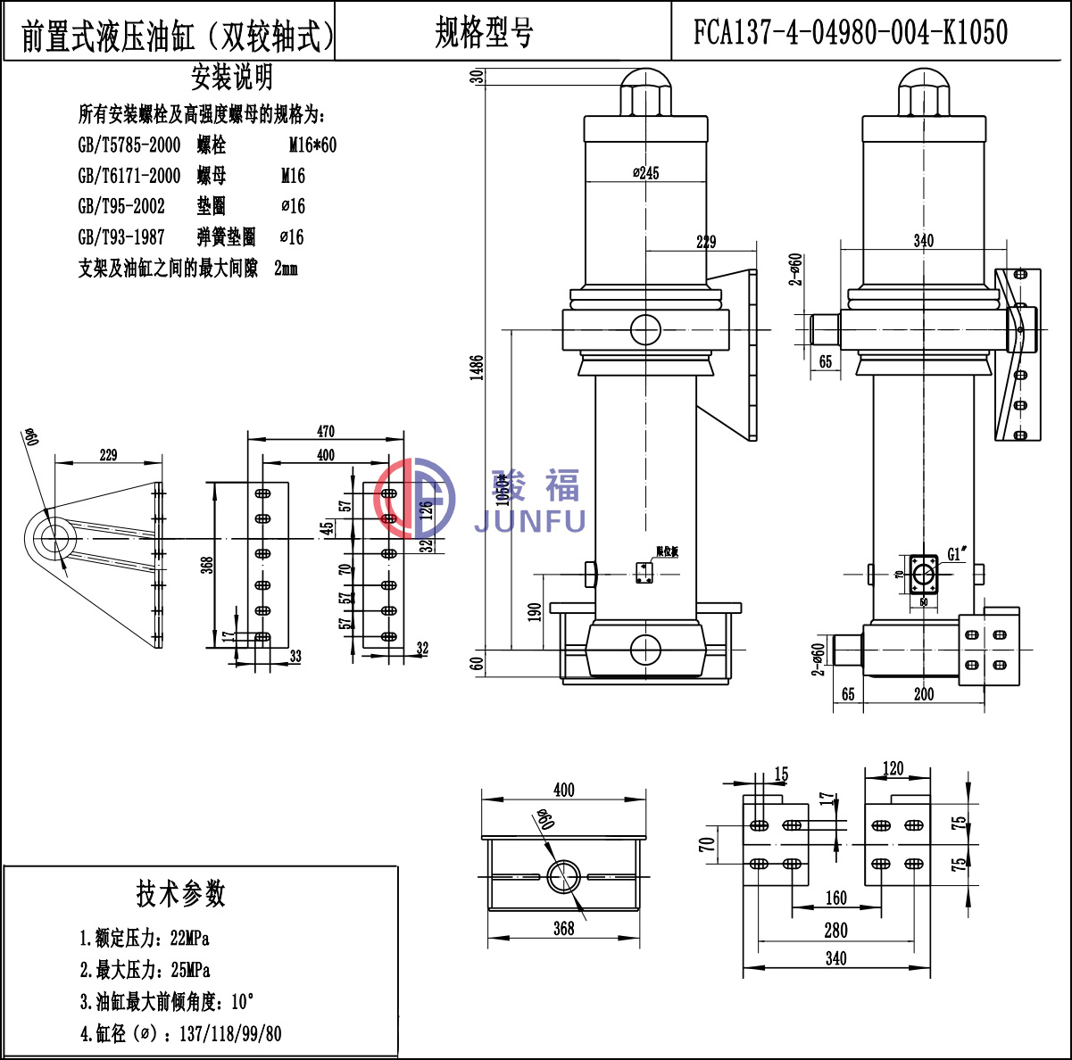 junfu series oil cylinder adopts innovative sealing technology and new material application, which can adapt to the temperature range of -40~110oC, and can achieve excellent performance in high temperature and low temperature environment operation!
